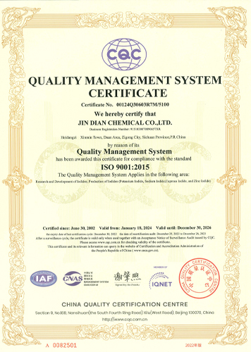 Jindian Chemical Co., Ltd is a chemical enterprise integrating R & D, production, sales and service. Over the past two decades, the company has developed rapidly and steadily, and its output value has increased rapidly. It is one of the enterprises with rapid growth in the same industry. At present, its sales network covers all provinces, cities and autonomous regions in China, and has successfully entered the international market. After obtaining the demonstration of iso9001:2015 international quality system in 2002, the product quality is more competitive and enjoys a high reputation in the industry.The company's main products are potassium iodide, sodium iodide, calcium iodide and so on.. At the same time, we have developed several new products with great market competitiveness, which will inject strong impetus into the sustainable development of the company after they are put on the market.